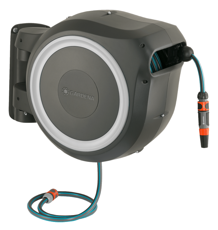 Der Gartenschlauch ist immer griffbereit, an der Wandhalterung lassen sich Spritzen, Brausen und Waschbürsten einfach aufhängen und aufbewahren, dank der praktischen Wandhalterung lässt sich die Schlauchbox in einem Winkel von mehr als 180° schwenken dadurch ist die Flexibilität gewährleistet und kann ohne Abknicken des Schlauchs jeden Garten-Winkel bewässern, der Gartenschlauch rastet dank der eingebauten kurzen Arretierstops automatisch an der gewünschten Länge ein, so kann man die Bewässerungsarbeit mühelos erledigen und hat dabei maximale Bewegungsfreiheit, die Wandschlauchbox RollUp XL kommt mit einer Wandhalterung, einem 35 Meter langen Bewässerungsschlauch, einem flexiblen Anschlussschlauch, allen benötigten Original GARDENA Systemteilen sowie einer Spritze mit zwei verschiedenen Sprühstrahloptionen, mit einem leichten Zug am Schlauchende wird die integrierte Stahlfeder aktiviert und rollt den Schlauch automatisch und zuverlässig wieder auf, die RollControl-Technologie bewirkt ein langsames und sicheres Einholen, egal wie weit der Schlauch ausgerollt ist, ohne Verknicken oder Verknoten des Schlauches, die Schlauchbox wird sowohl mit einem UV-Schutz als auch mit einem Frostschutz vor äusseren Wettereinflüssen geschützt