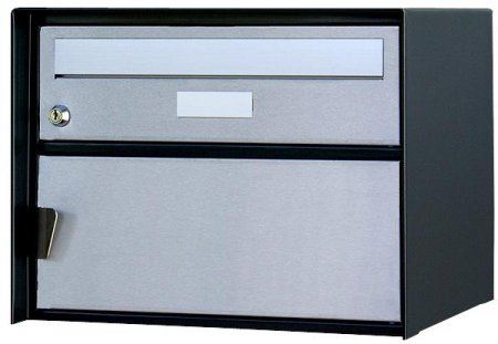 Gehäuse pulverbeschichtet RAL 7016 Front aus Chromstahl inkl. Zylinder mit 2 Schlüssel und Alu-Namenschild