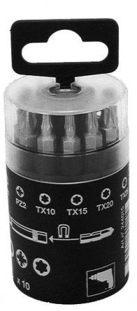Inhalt: 5 x TX 25, 2 Inbus 3, 4 mm, 2 Kreuzschlitz Pozidriv 1, 2, mit 1 Magnethalter