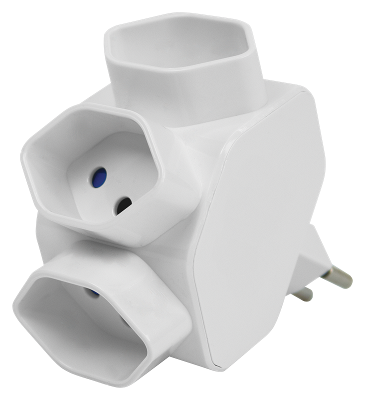 Der sternförmige Abzweigstecker verfügt über drei T13-Steckdosen mit erhöhtem Berührungsschutz für mehr Sicherheit. Durch die spezielle sternförmige Anordnung der Steckdosen wird eine optimale Platznutzung ermöglicht, sodass mehrere Geräte gleichzeitig angeschlossen werden können, ohne dass sich die Stecker gegenseitig blockieren. Das kompakte Design sorgt für eine flexible Anwendung.