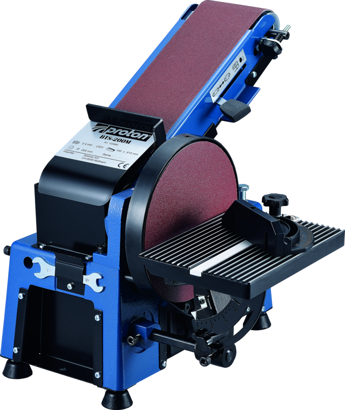 Die Band- und Tellerschleifmaschine das ideale Kombigerät. Ideal um Profile zu entgraten. Optional kann mit dem Bandreinigungsstab das Schleifblatt gereinigt werden dies erhöht die Standzeit des Schleifbandes. Das Schleifband kann über einen Spannhebel gespannt werden. Der Schleiftisch der Schleifscheibe hilft dem Nutzer das Werkstück geführt in verschiedenen Winkeln zu schleifen.