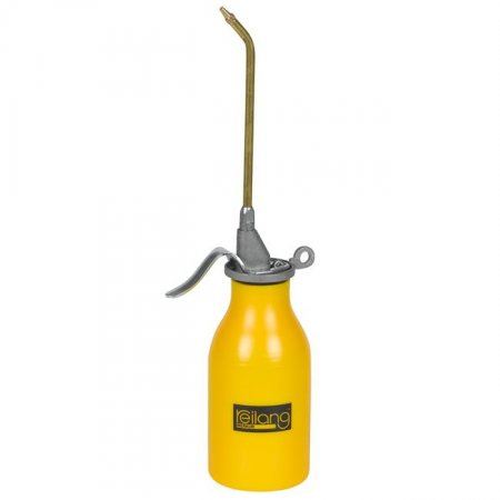 mit Kunststoffbehälter, Doppelpumpe und Drehkolben, die Ganzmetallkonstruktion besitzt eine Haupt- und Kopfpumpe, der schwerkraftgeführte, drehgelagerte Ansaugkolben sorgt für eine restlose Behälterentleerung, beim Einsatz kopfüber gewährt die Kopfpumpe volle Ölerwirkung, Behältermaterial ND-PE, Pumpwerk ist aus Messing, Hubvolumen Hauptpumpe 0,2-1,5 ml, Hubvolumen Kopfpumpe 0,2-0,8 ml, Spritzrohrlänge 130 mm