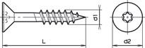 Senk-Spanplattenschr.,T10 mit Schaft