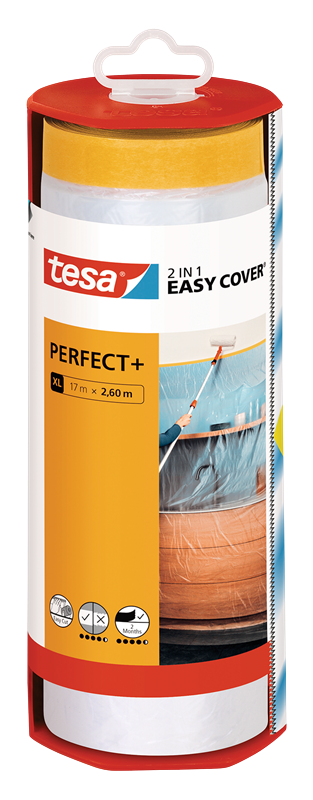 esa® Easy Cover Perfect+ eignet sich hervorragend für Renovierungsarbeiten im Innenbereich. Die clevere 2-in-1-Lösung schützt Oberflächen, Möbel und andere Gegenstände vor Farbspritzern, Staub und Schmutz. Abdeckfolie und integriertes Malerband sind lange haltbar und besonders reissfest. tesa® Easy Cover Perfect+ kann bis zu 2 Monate rückstandsfrei entfernt werden und ist die Basis für überzeugende Ergebnisse.