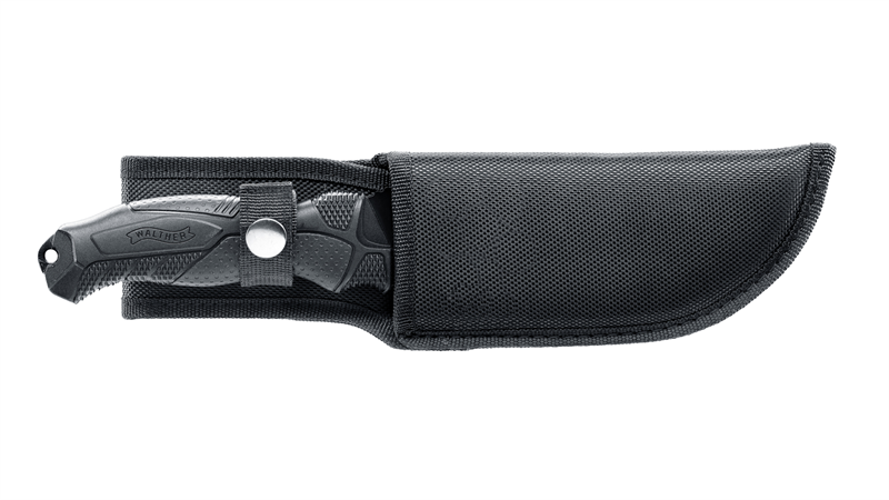 Eine wuchtige Klinge, die mit einem deutlich länger als üblichen Griff ergänzt wird, kennzeichnet das OSK 1. Dies ermöglicht unterschiedliche Griffpositionen, weiter hinten, für mehr Wucht beim Hacken, oder kürzer gegriffen, für mehr Kraft z.B. beim Schnitzen und für mehr Kontrolle. Die Klingenform ist ebenso ungewöhnlich, mit einem Recurve-Teil, etwa zum Abschälen von Rinde, und einer stumpfen Klingenrückenfläche, auf die man z.B. zum Holzspalten schlagverstärkend hämmern kann. Die Spitze bildet eine geradlinige Verlängerung der Kraftlinie: so kann man das Messer mit einem entsprechenden Holzstab als improvisierten Speer einsetzen. Ein ausgeprägter Handschutz schützt die Finger davor, auf die Klinge vorzurutschen. Diese besteht aus 440C mit einer schwarzen Schutzbeschichtung und wurde wegen der höheren Stabilität mit durchgehendem Erl ausgeführt, dieser reicht also von der Klingenspitze bis zur abschließenden Riemenöse am hinteren Ende. Der direkt angespritzte Polymer-Griff ist mit rutschhemmenden Gummi-Einlagen ausgestattet. Eine Nylonscheide mit Durchstichschutz und einer langen Längs- und vier schmalen Querschlaufen für den Gürtel schützt das OSK 1, wenn es nicht im Einsatz ist.